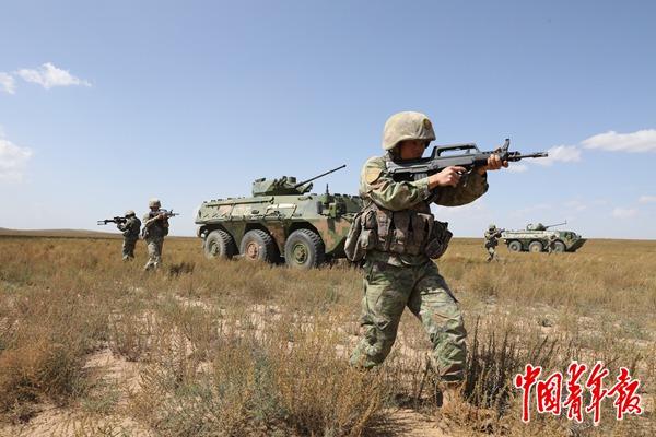 9月13日,塞北某野外駐訓(xùn)場(chǎng),“劉老莊連”官兵進(jìn)行實(shí)戰(zhàn)課目演練。